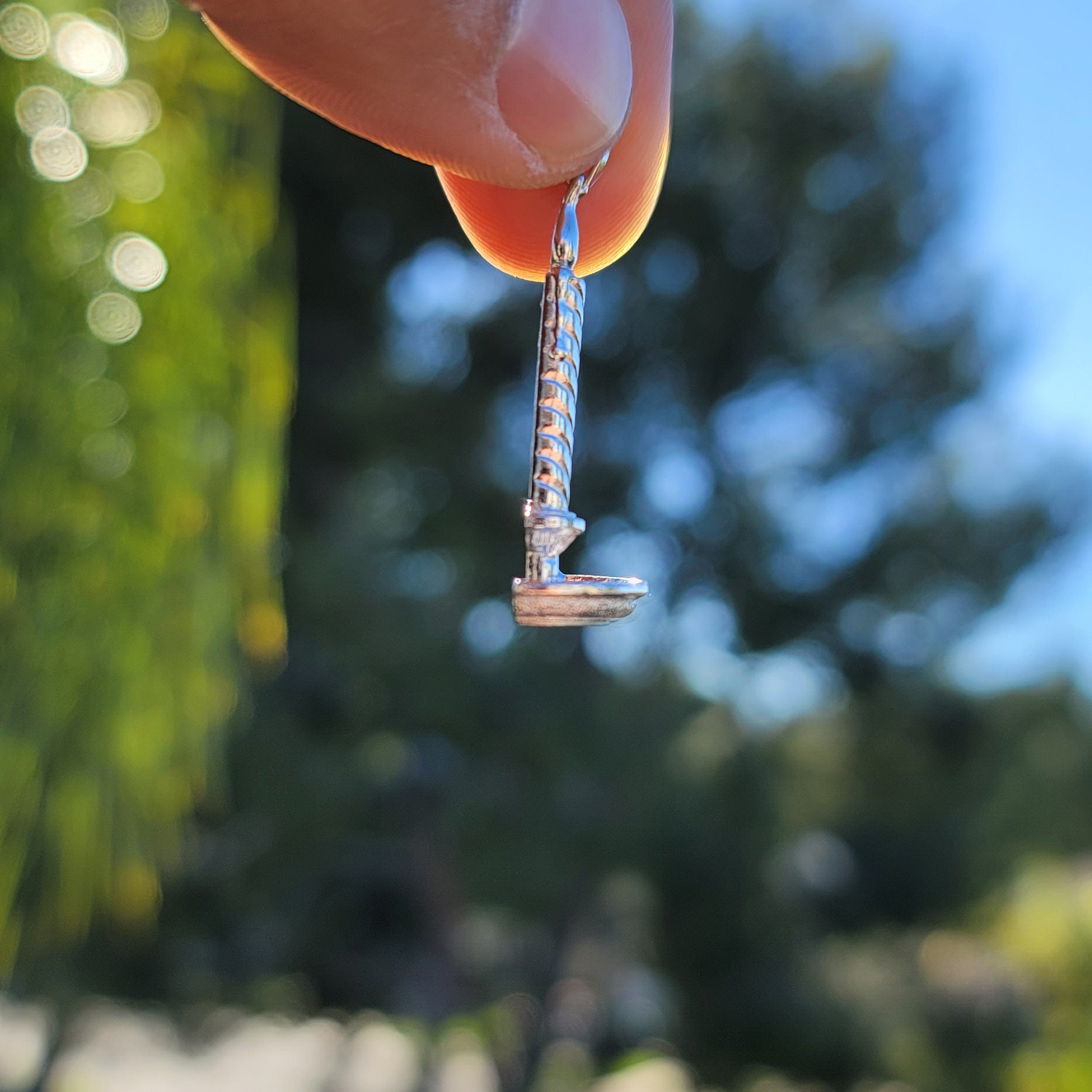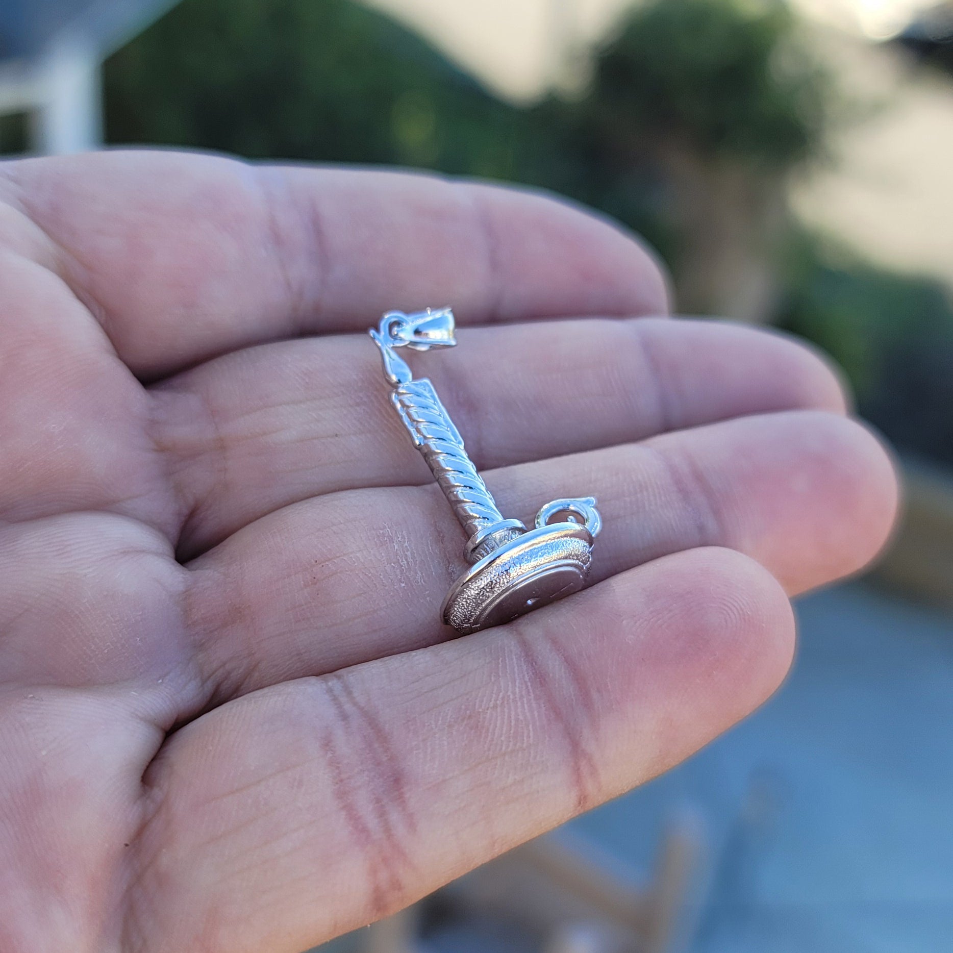 This gorgeous 10K, 14K or 18K gold candle with candle stand pendant. This 10K, 14K or 18K gold pendant measures 39 mm in length by 18 mm in width. Measurement includes bale. JewelsObsession creates all gold jewelry in our state of the art manufacturing facility.