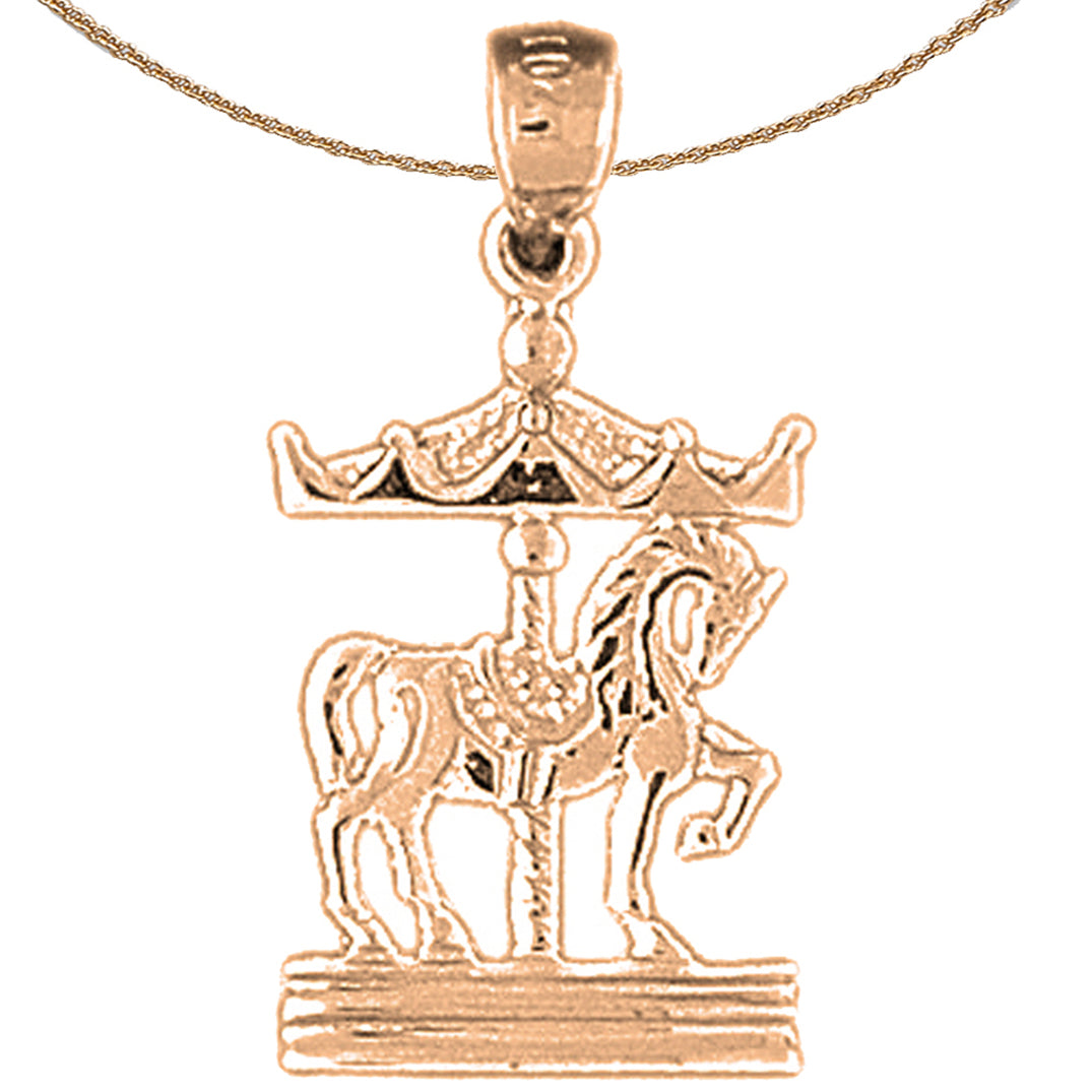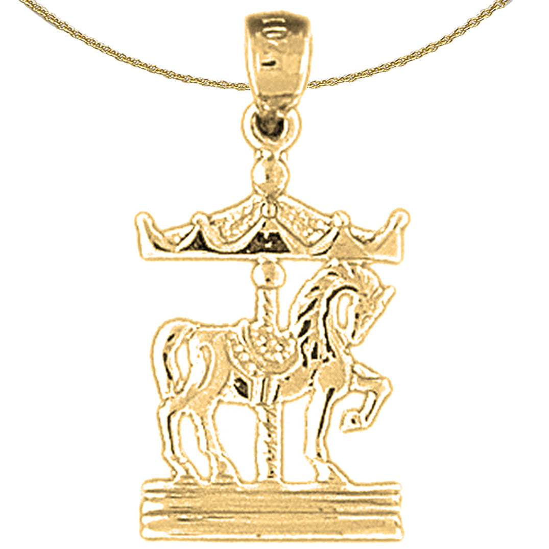 This is an elegant 14K or 18K gold carousel pendant. This 14K or 18K gold pendant measures 26 mm in length by 14 mm in width. Measurement includes bale. JewelsObsession creates all gold jewelry in our state of the art manufacturing facility.