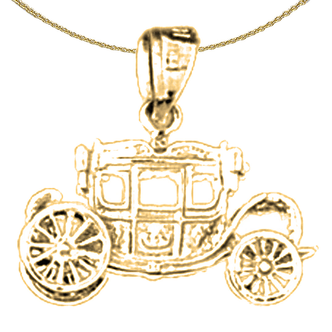 This gorgeous 14K or 18K gold chariot pendant. This 14K or 18K gold pendant measures 17 mm in length by 19 mm in width. Measurement includes bale. JewelsObsession creates all gold jewelry in our state of the art manufacturing facility.