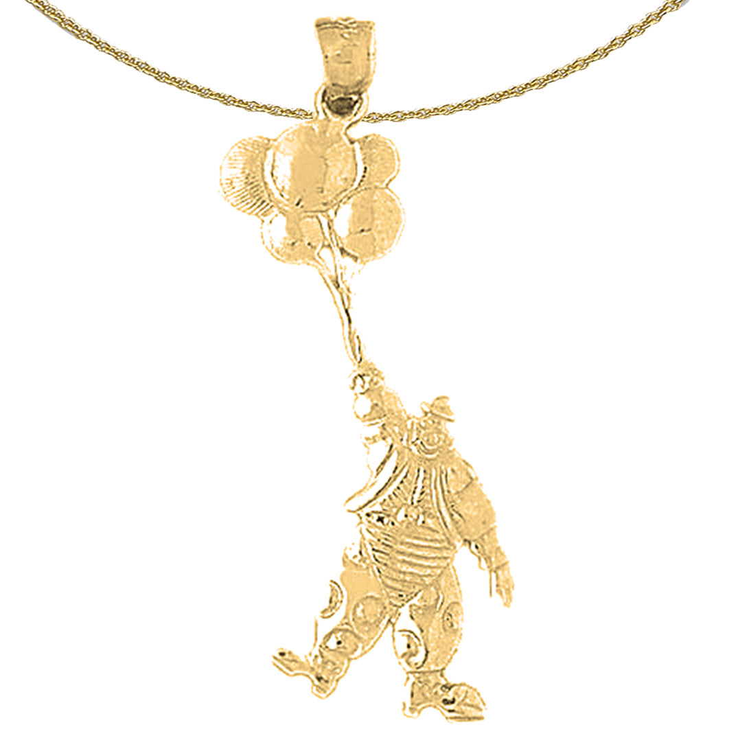 This is an elegant 10K, 14K or 18K gold clown pendant. This 10K, 14K or 18K gold pendant measures 42 mm in length by 19 mm in width. Measurement includes bale. JewelsObsession creates all gold jewelry in our state of the art manufacturing facility.