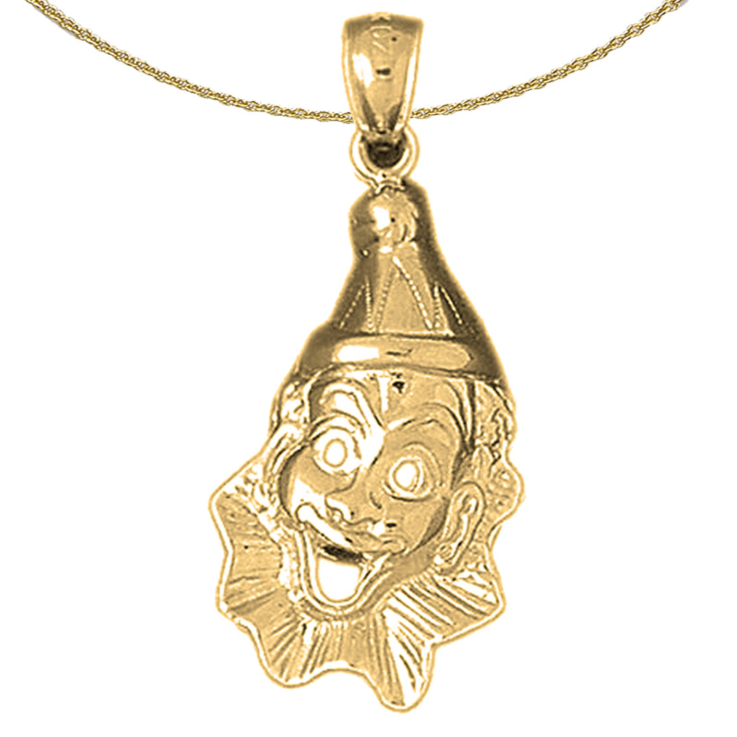 This is a stunning 10K, 14K or 18K gold clown pendant. This 10K, 14K or 18K gold pendant measures 32 mm in length by 15 mm in width. Measurement includes bale. JewelsObsession creates all gold jewelry in our state of the art manufacturing facility.
