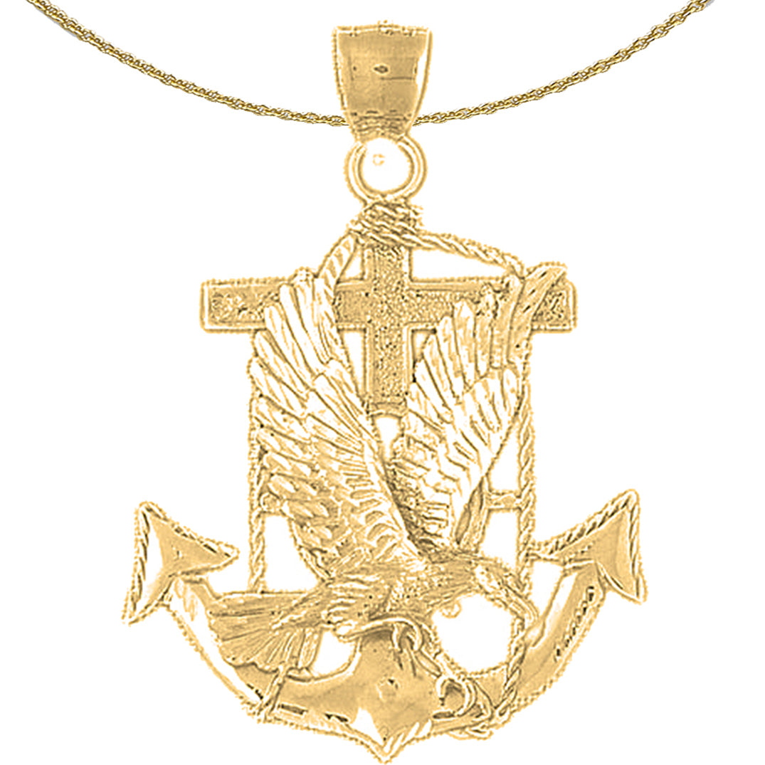 This gorgeous 10K, 14K or 18K gold eagle pendant. This 10K, 14K or 18K gold pendant measures 67 mm in length by 47 mm in width. Measurement includes bale. JewelsObsession creates all gold jewelry in our state of the art manufacturing facility.