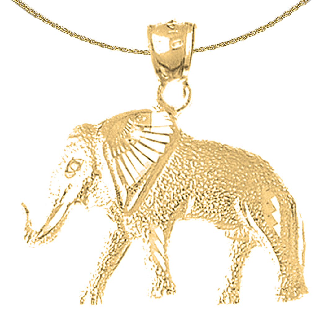 This is a beautiful 10K, 14K or 18K gold elephant pendant. This 10K, 14K or 18K gold pendant measures 26 mm in length by 26 mm in width. Measurement includes bale. JewelsObsession creates all gold jewelry in our state of the art manufacturing facility.