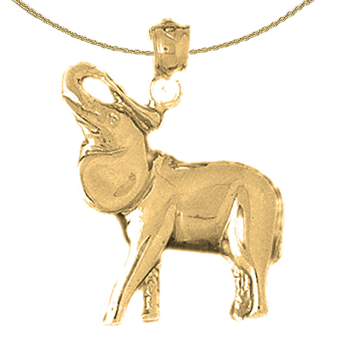 This gorgeous 10K, 14K or 18K gold elephant pendant. This 10K, 14K or 18K gold pendant measures 26 mm in length by 20 mm in width. Measurement includes bale. JewelsObsession creates all gold jewelry in our state of the art manufacturing facility.