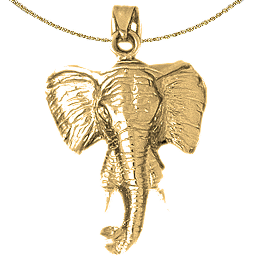 This gorgeous 10K, 14K or 18K gold elephant pendant. This 10K, 14K or 18K gold pendant measures 30 mm in length by 19 mm in width. Measurement includes bale. JewelsObsession creates all gold jewelry in our state of the art manufacturing facility.