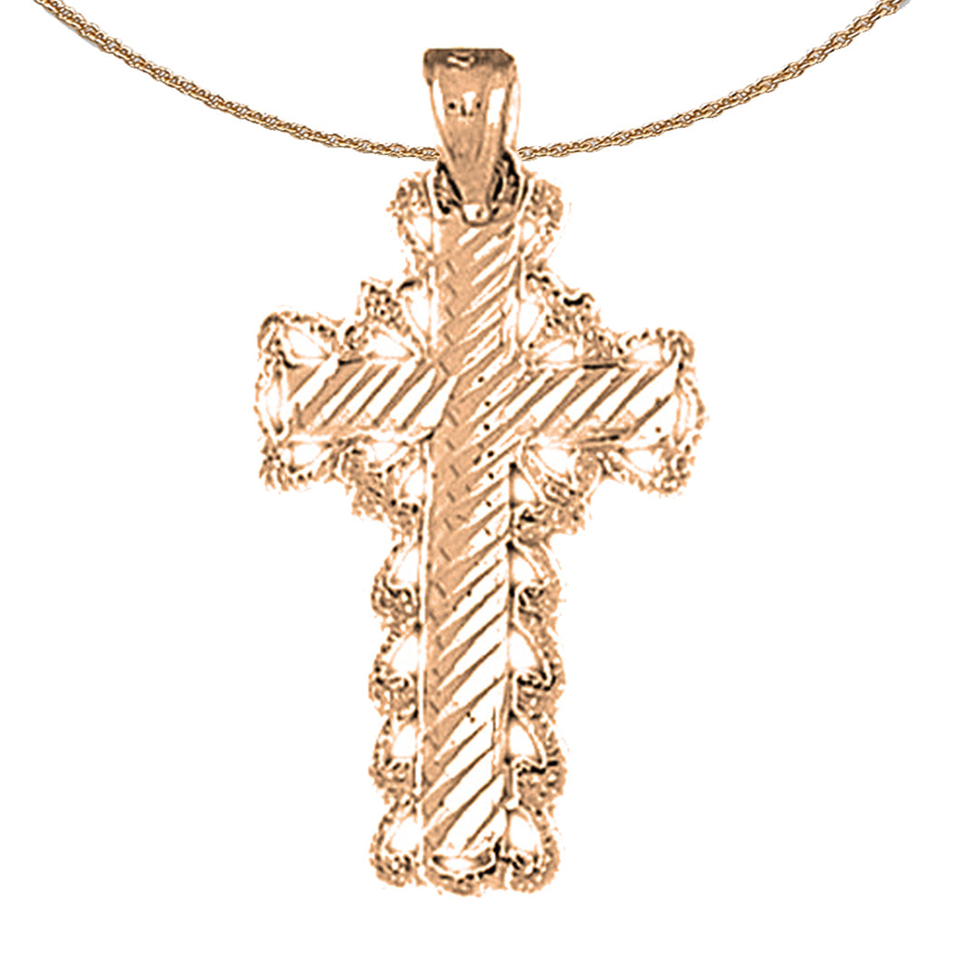 This is a stunning 14K or 18K gold cross pendant. This 14K or 18K gold pendant measures 31 mm in length by 17 mm in width. Measurement includes bale. JewelsObsession creates all gold jewelry in our state of the art manufacturing facility.