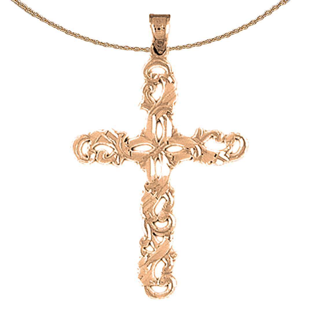This is an elegant 14K or 18K gold cross pendant. This 14K or 18K gold pendant measures 43 mm in length by 27 mm in width. Measurement includes bale. JewelsObsession creates all gold jewelry in our state of the art manufacturing facility.