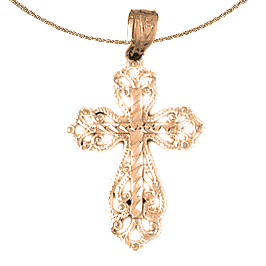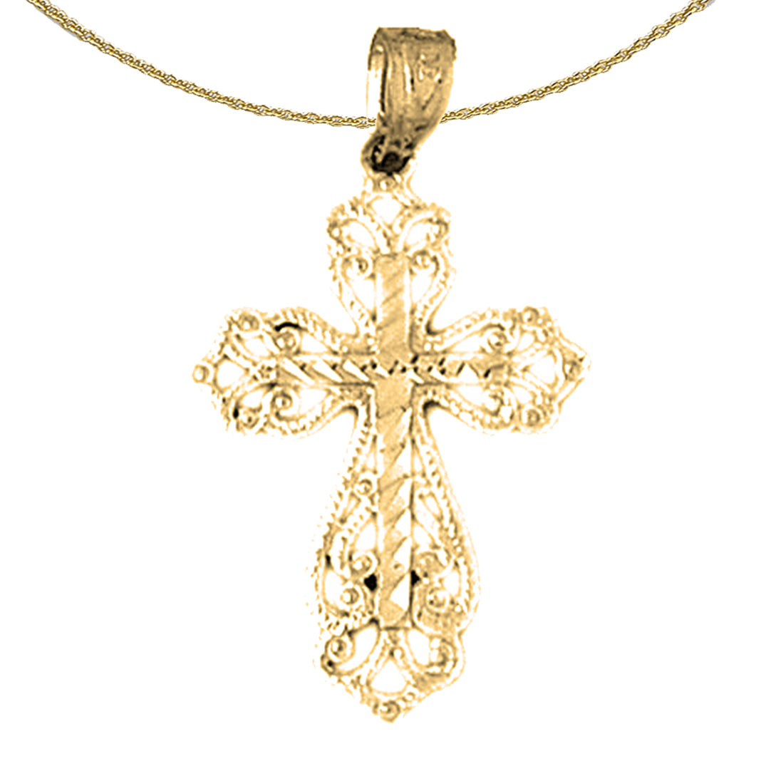 This gorgeous 14K or 18K gold cross pendant. This 14K or 18K gold pendant measures 30 mm in length by 17 mm in width. Measurement includes bale. JewelsObsession creates all gold jewelry in our state of the art manufacturing facility.