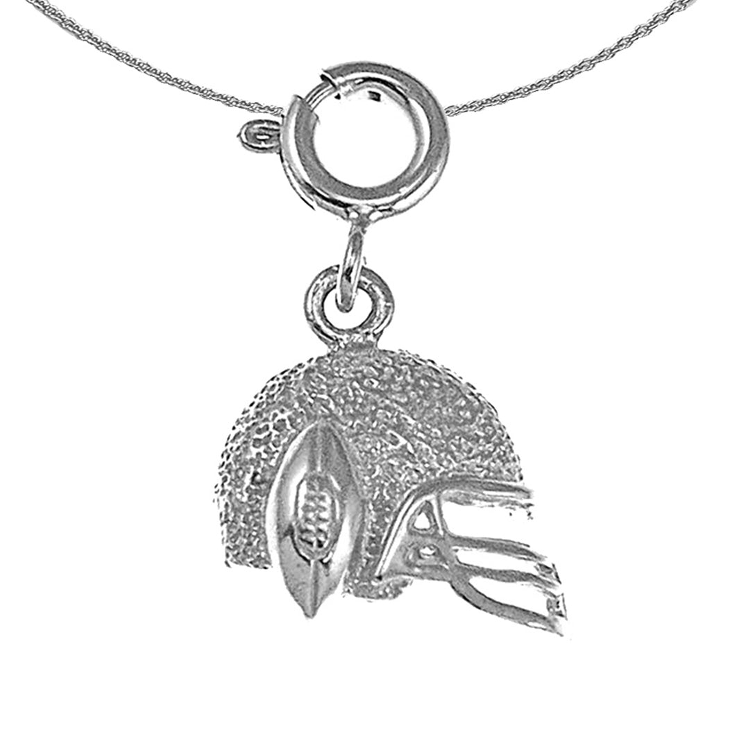 This is an elegant 14K or 18K gold football helmet pendant. This 14K or 18K gold pendant measures 16 mm in length by 13 mm in width. Measurement includes bale. JewelsObsession creates all gold jewelry in our state of the art manufacturing facility.