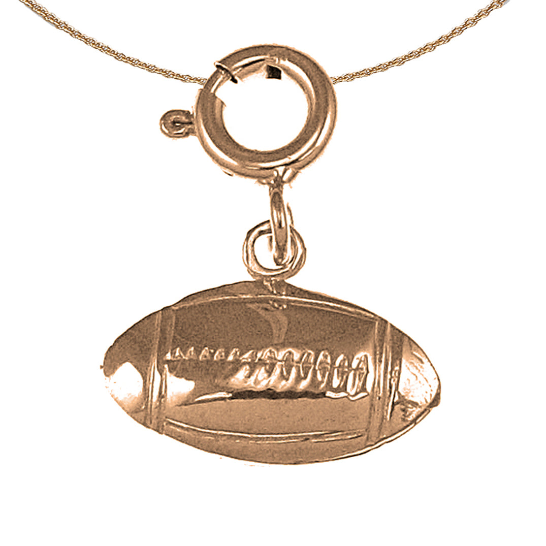 This is an elegant 14K or 18K gold football pendant. This 14K or 18K gold pendant measures 12 mm in length by 14 mm in width. Measurement includes bale. JewelsObsession creates all gold jewelry in our state of the art manufacturing facility.