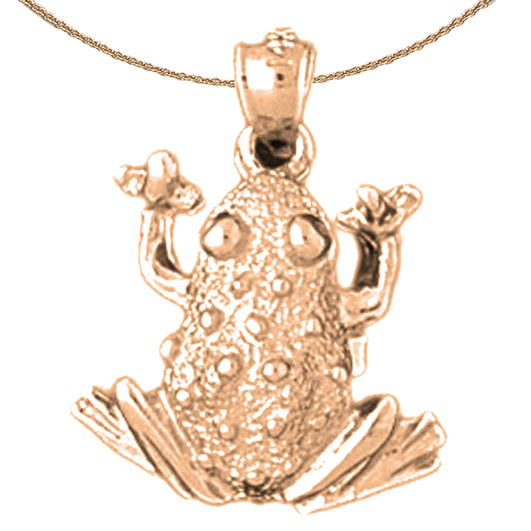 This gorgeous 10K, 14K or 18K gold frog pendant. This 10K, 14K or 18K gold pendant measures 20 mm in length by 16 mm in width. Measurement includes bale. JewelsObsession creates all gold jewelry in our state of the art manufacturing facility.