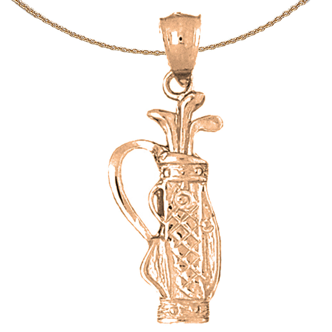 This gorgeous 10K, 14K or 18K gold golf bag pendant. This 10K, 14K or 18K gold pendant measures 37 mm in length by 13 mm in width. Measurement includes bale. JewelsObsession creates all gold jewelry in our state of the art manufacturing facility.