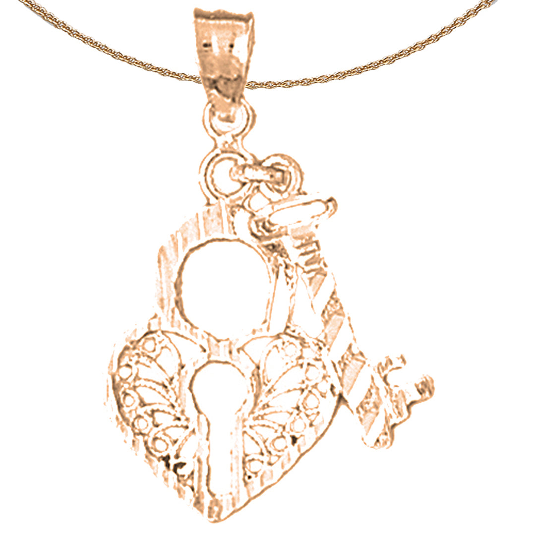 14K or 18K Gold Heart Lock And Key Pendant