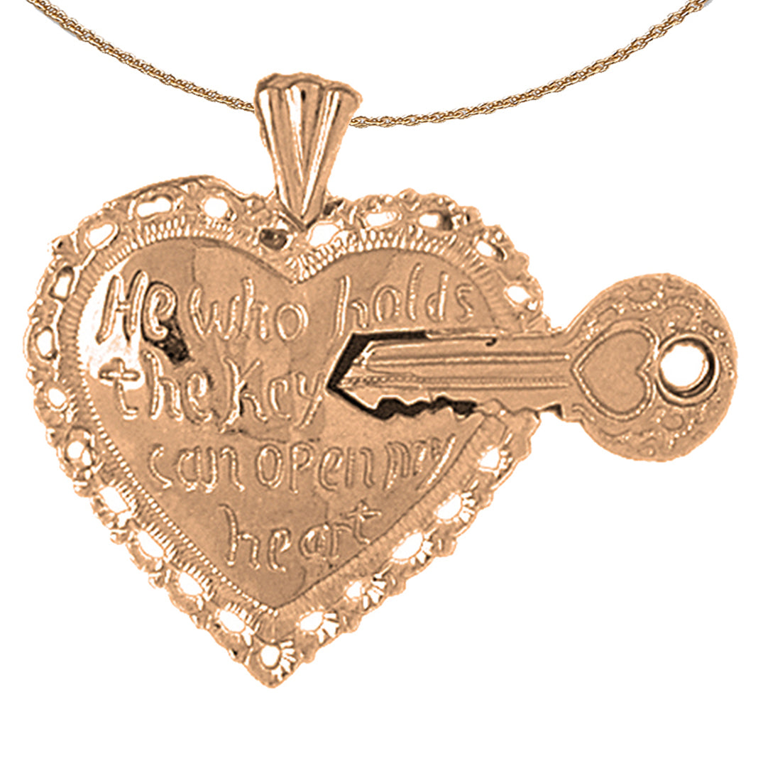 This gorgeous 10K, 14K or 18K gold heart with break off key pendant. This 10K, 14K or 18K gold pendant measures 31 mm in length by 37 mm in width. Measurement includes bale. JewelsObsession creates all gold jewelry in our state of the art manufacturing facility.