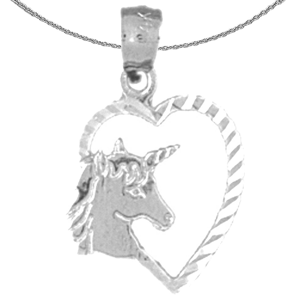 This is a beautiful 14K or 18K gold heart with unicorn pendant. This 14K or 18K gold pendant measures 20 mm in length by 12 mm in width. Measurement includes bale. JewelsObsession creates all gold jewelry in our state of the art manufacturing facility.