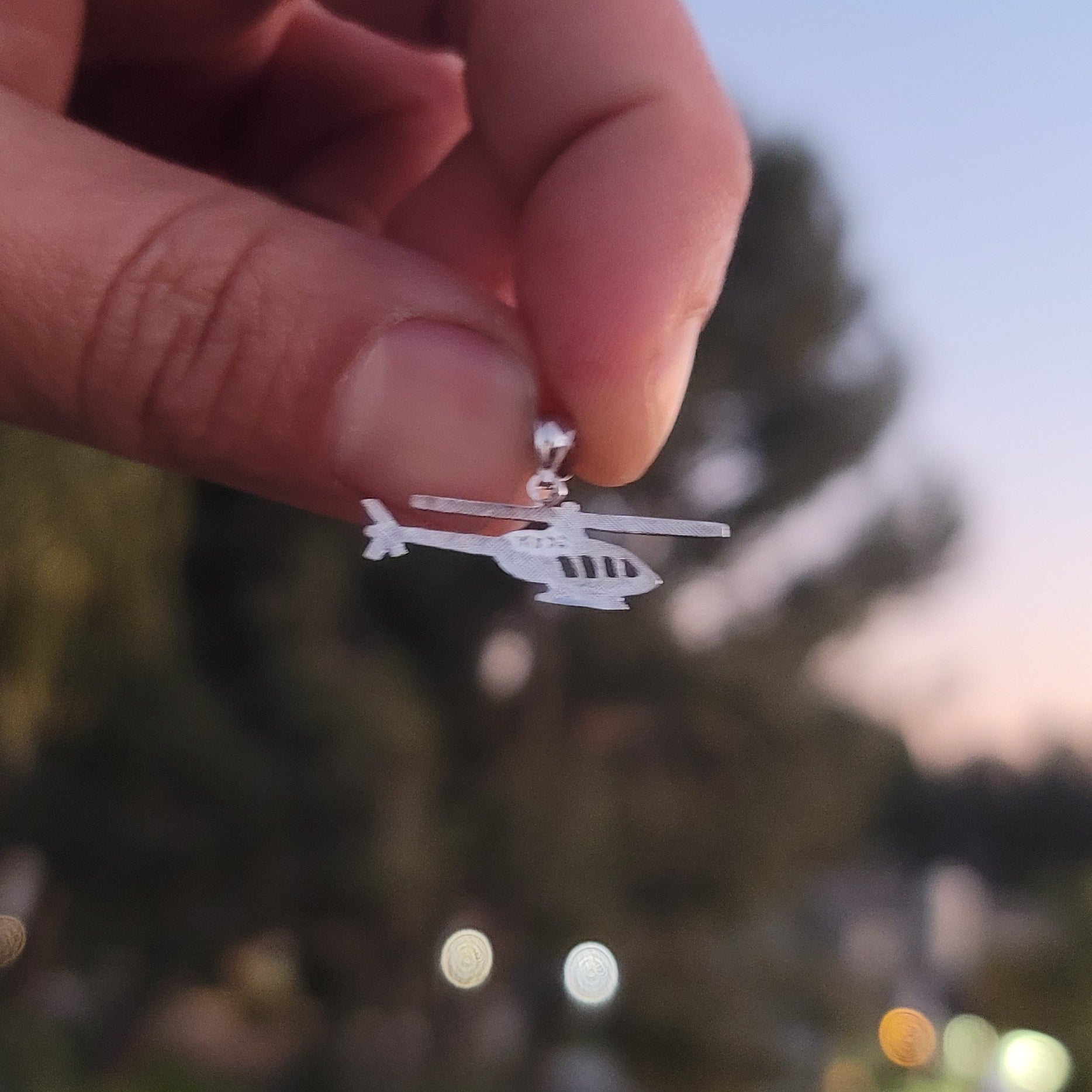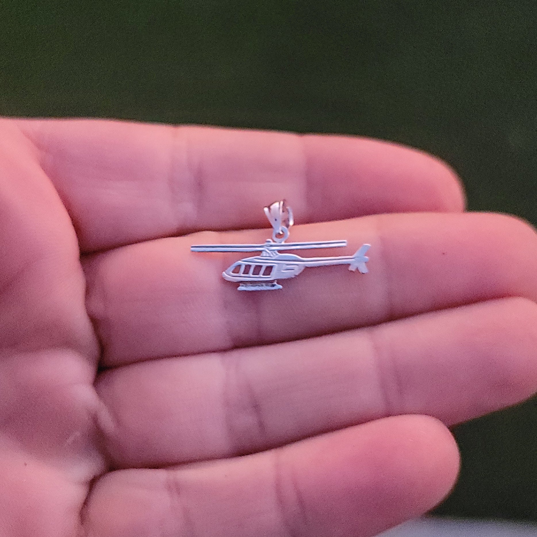 This is a stunning 14K or 18K gold helicopter pendant. This 14K or 18K gold pendant measures 12 mm in length by 28 mm in width. Measurement includes bale. JewelsObsession creates all gold jewelry in our state of the art manufacturing facility.