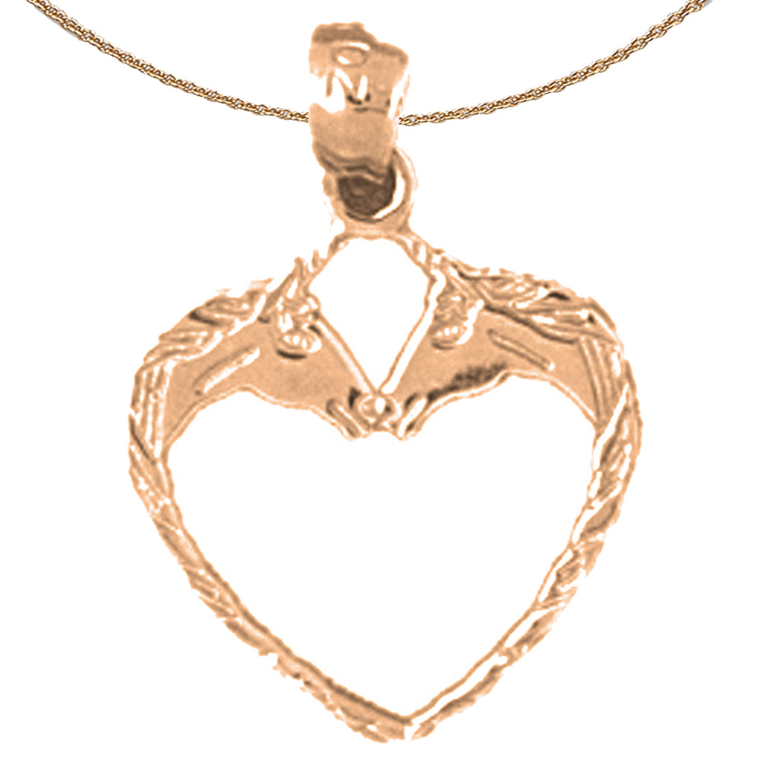 This is a beautiful 14K or 18K gold horse heart pendant. This 14K or 18K gold pendant measures 21 mm in length by 15 mm in width. Measurement includes bale. JewelsObsession creates all gold jewelry in our state of the art manufacturing facility.