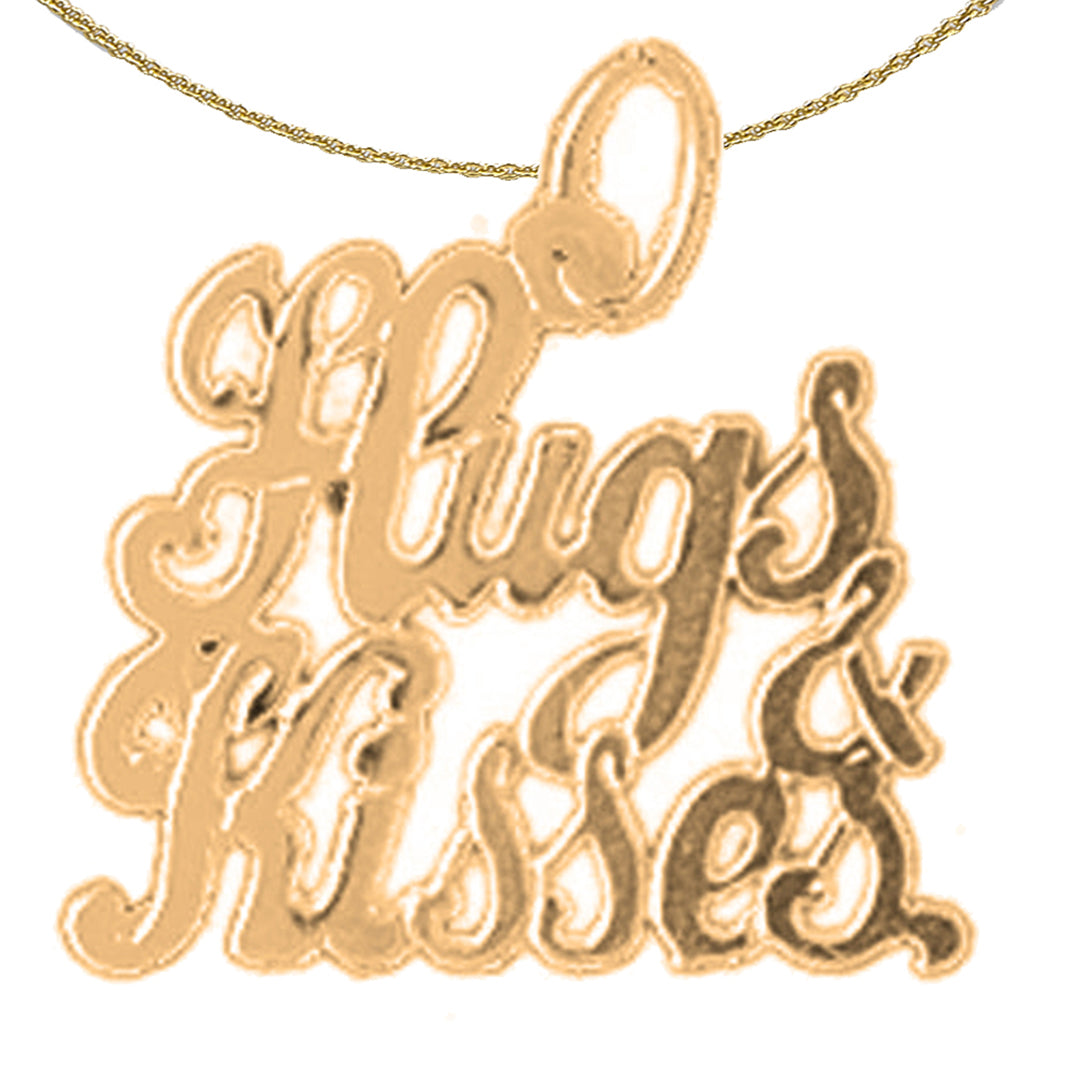 This is a stunning 14K or 18K gold hugs & kisses pendant. This 14K or 18K gold pendant measures in length by in width. Measurement includes bale. JewelsObsession creates all gold jewelry in our state of the art manufacturing facility.
