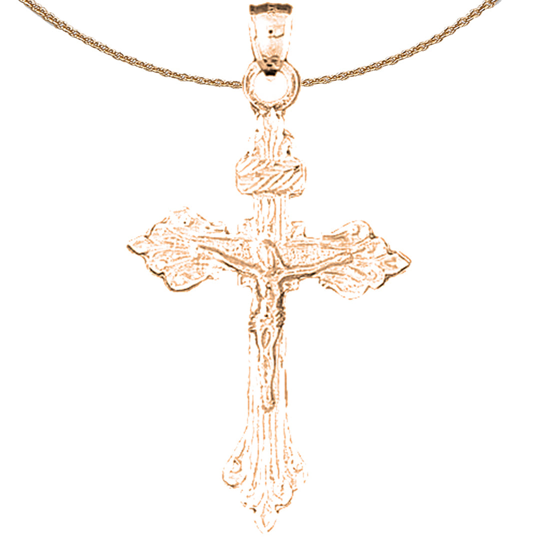 This is a stunning 14K or 18K gold cross pendant. This 14K or 18K gold pendant measures 54 mm in length by 29 mm in width. Measurement includes bale. JewelsObsession creates all gold jewelry in our state of the art manufacturing facility.