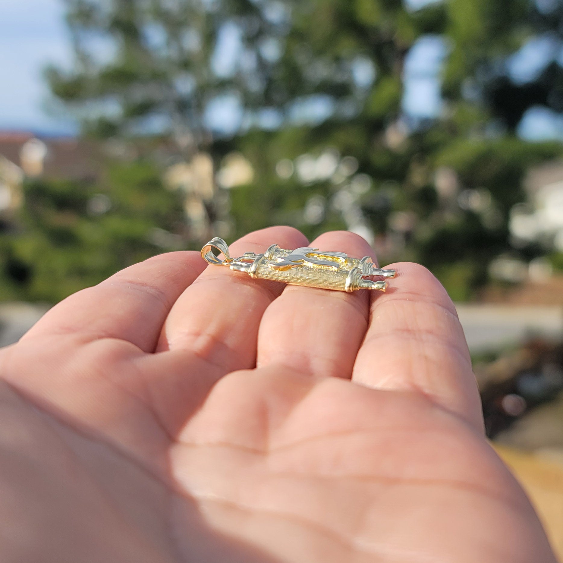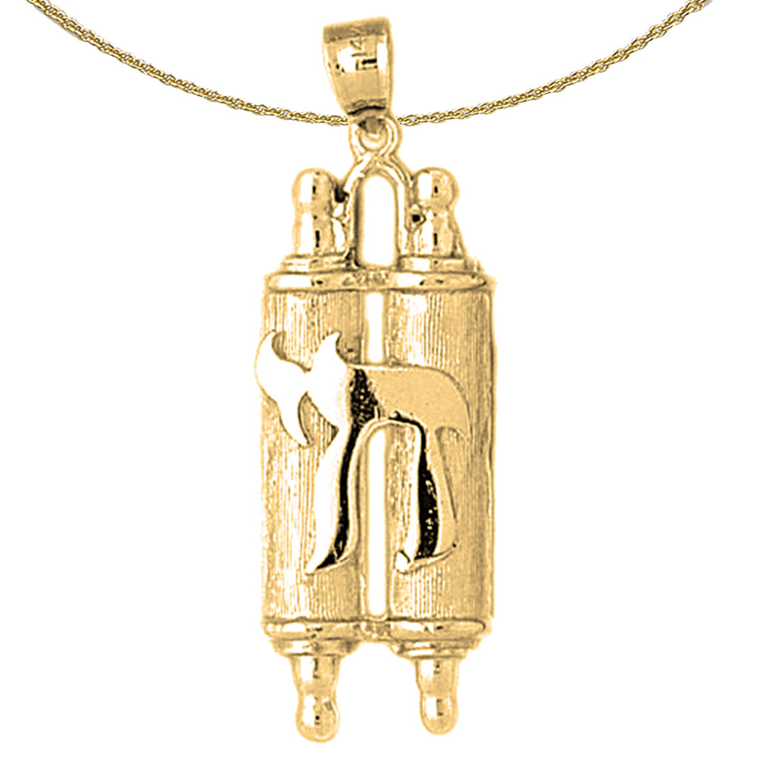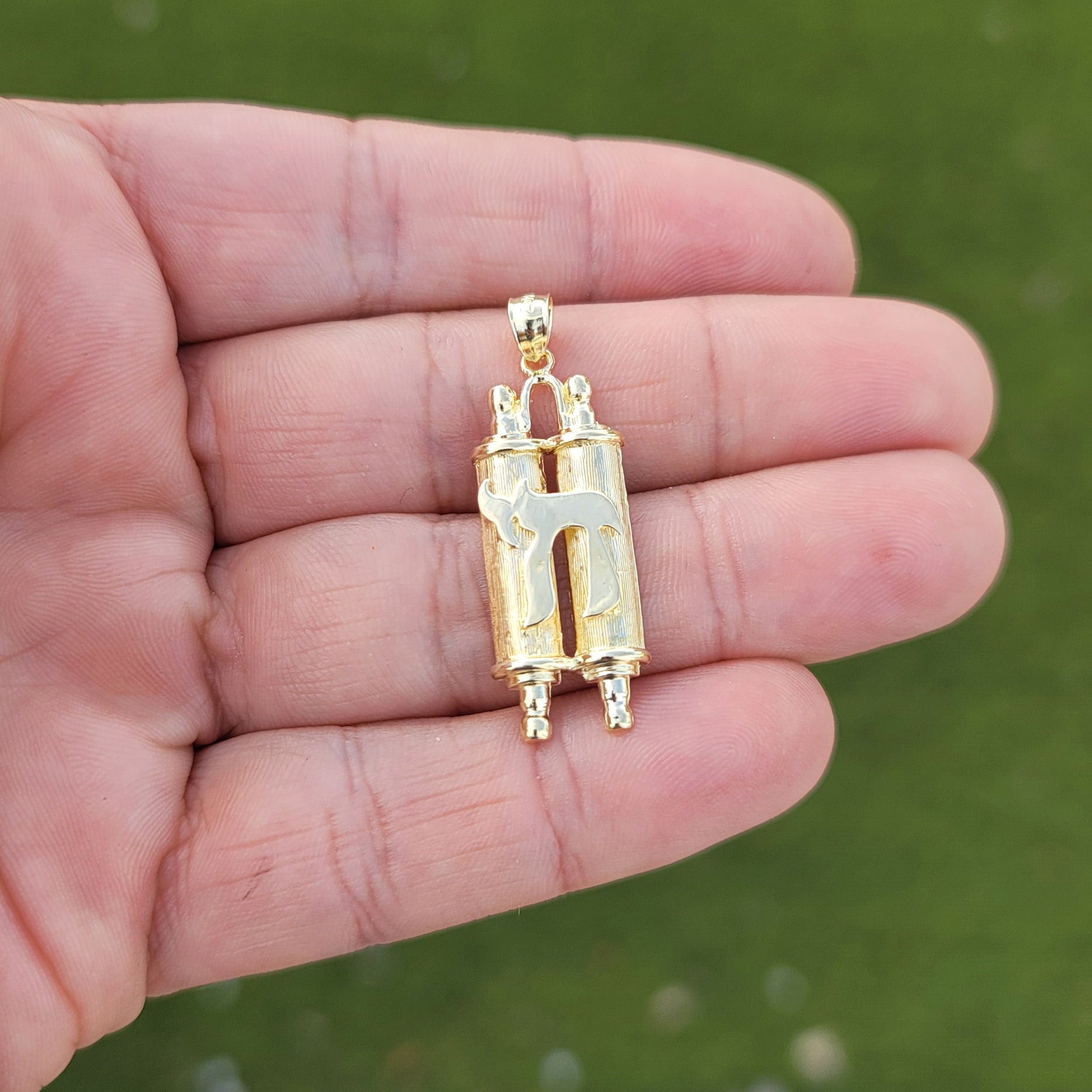 10K, 14K or 18K Gold Jewish Torah Scroll with Chai Pendant