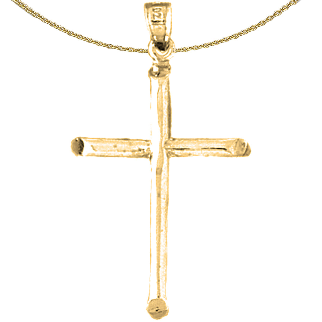 This gorgeous 14K or 18K gold cross pendant. This 14K or 18K gold pendant measures 38 mm in length by 22 mm in width. Measurement includes bale. JewelsObsession creates all gold jewelry in our state of the art manufacturing facility.