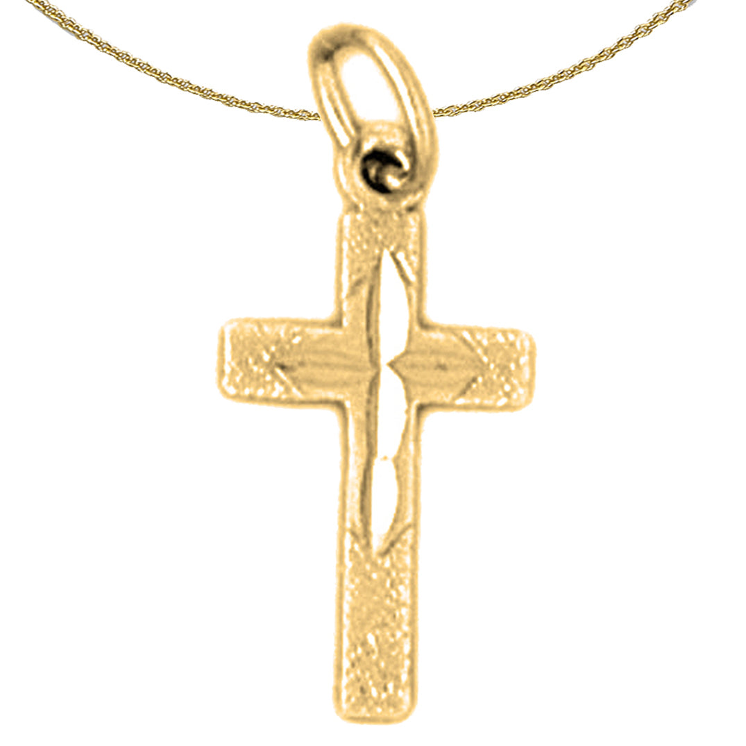 This gorgeous 14K or 18K gold cross pendant. This 14K or 18K gold pendant measures 20 mm in length by 9 mm in width. Measurement includes bale. JewelsObsession creates all gold jewelry in our state of the art manufacturing facility.