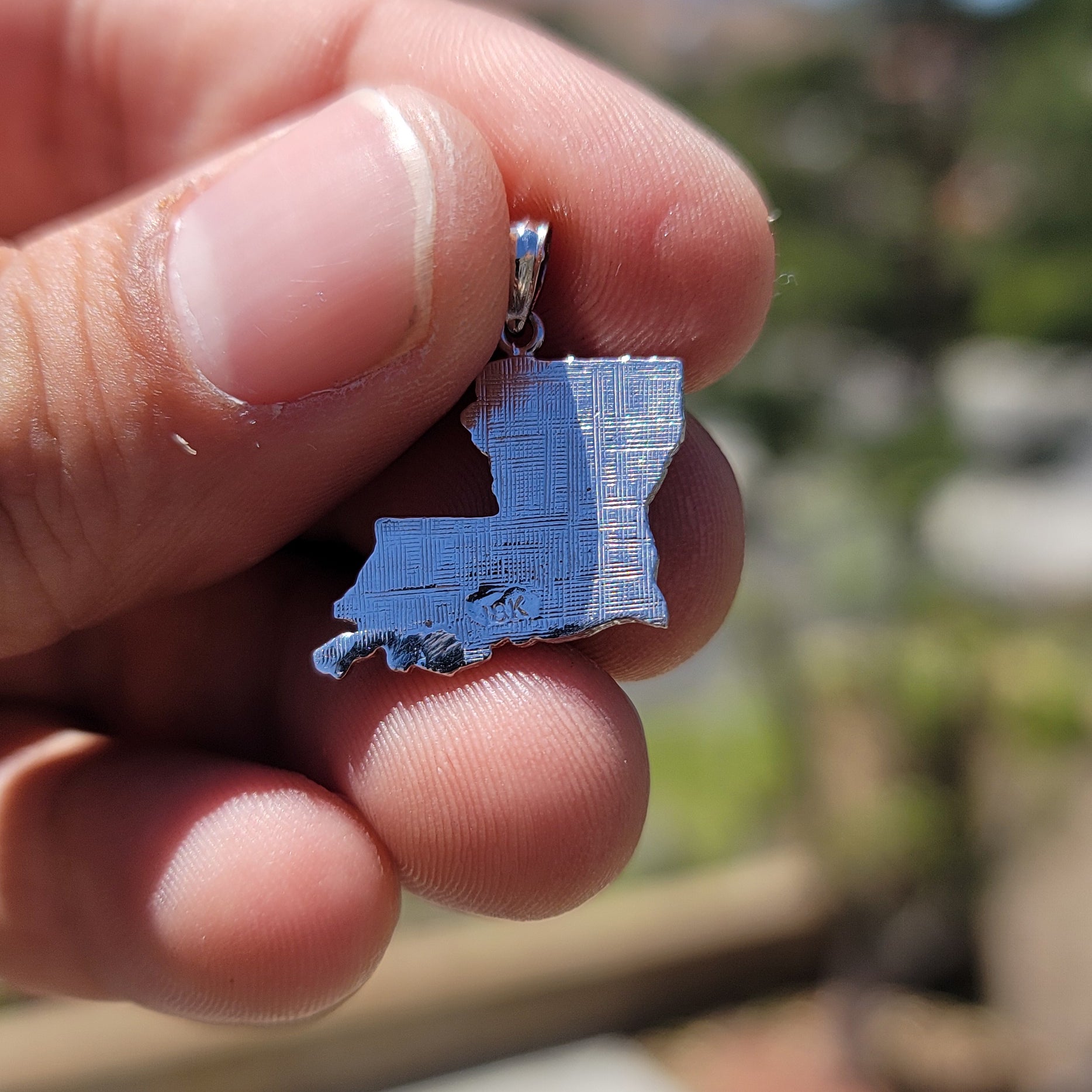 This is an elegant 14K or 18K gold louisiana pendant. This 14K or 18K gold pendant measures in length by in width. Measurement includes bale. JewelsObsession creates all gold jewelry in our state of the art manufacturing facility.