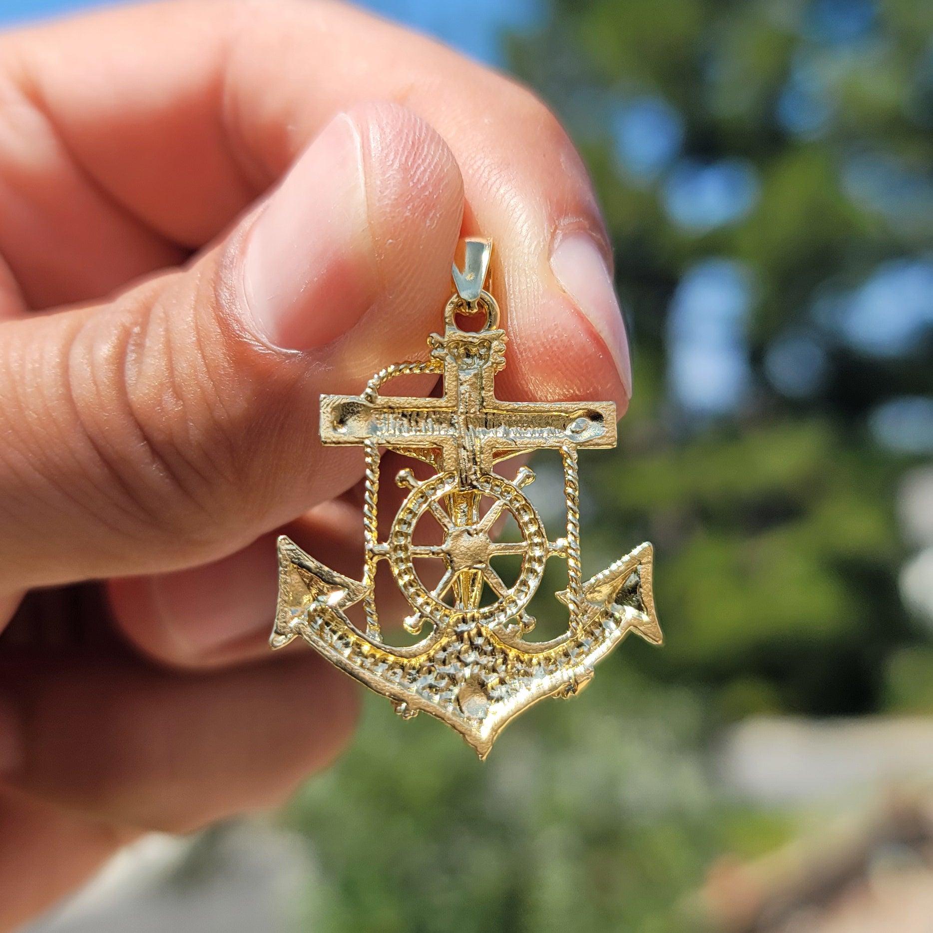 This is a stunning 10K, 14K or 18K gold mariners cross/crucifix pendant. This 10K, 14K or 18K gold pendant measures 40 mm in length by 28 mm in width. Measurement includes bale. JewelsObsession creates all gold jewelry in our state of the art manufacturing facility.