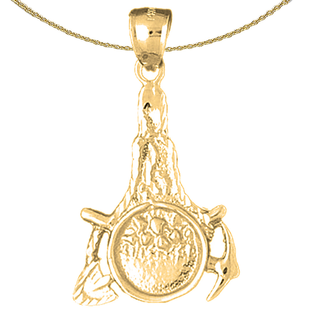 This is an elegant 10K, 14K or 18K gold miners tools pendant. This 10K, 14K or 18K gold pendant measures 37 mm in length by 31 mm in width. Measurement includes bale. JewelsObsession creates all gold jewelry in our state of the art manufacturing facility.