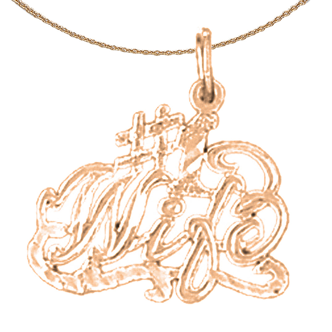 This is an elegant 14K or 18K gold #1 wife pendant. This 14K or 18K gold pendant measures in length by in width. Measurement includes bale. JewelsObsession creates all gold jewelry in our state of the art manufacturing facility.