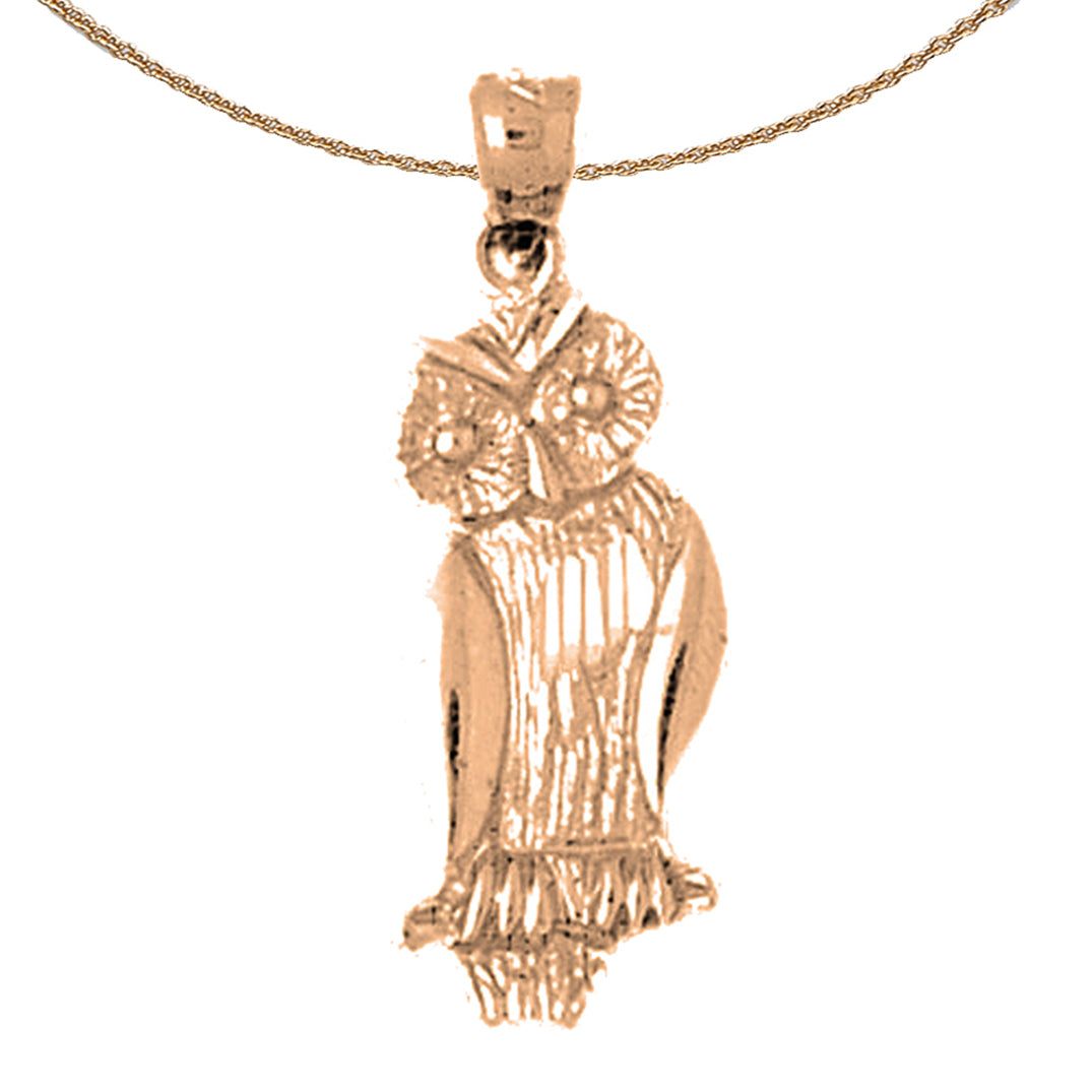 This is a stunning 14K or 18K gold owl pendant. This 14K or 18K gold pendant measures 28 mm in length by 10 mm in width. Measurement includes bale. JewelsObsession creates all gold jewelry in our state of the art manufacturing facility.
