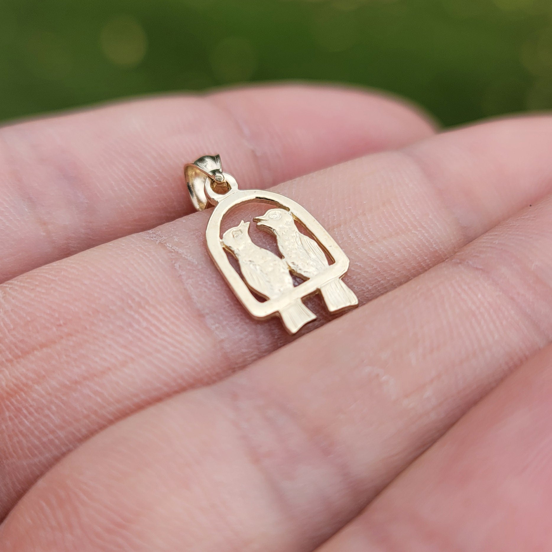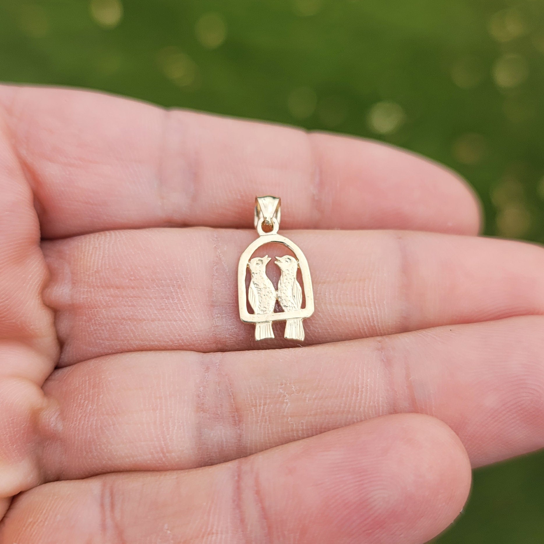 This is an elegant 14K or 18K gold parrot pendant. This 14K or 18K gold pendant measures 20 mm in length by 11 mm in width. Measurement includes bale. JewelsObsession creates all gold jewelry in our state of the art manufacturing facility.
