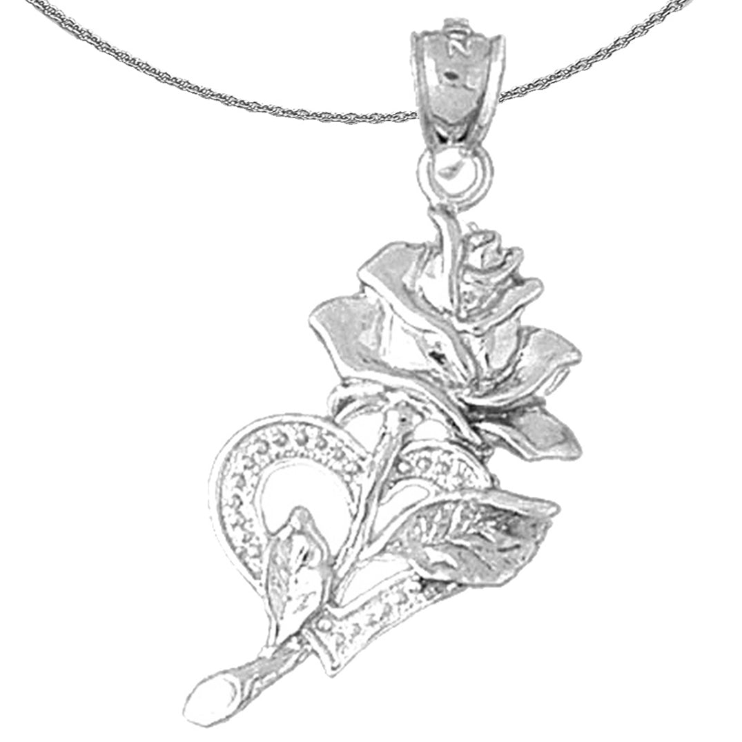 This is an elegant 10K, 14K or 18K gold rose with heart pendant. This 10K, 14K or 18K gold pendant measures in length by in width. Measurement includes bale. JewelsObsession creates all gold jewelry in our state of the art manufacturing facility.