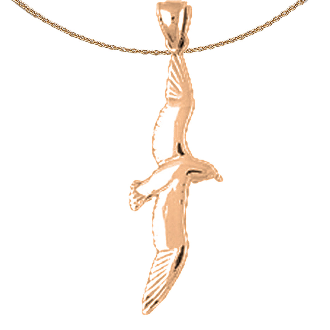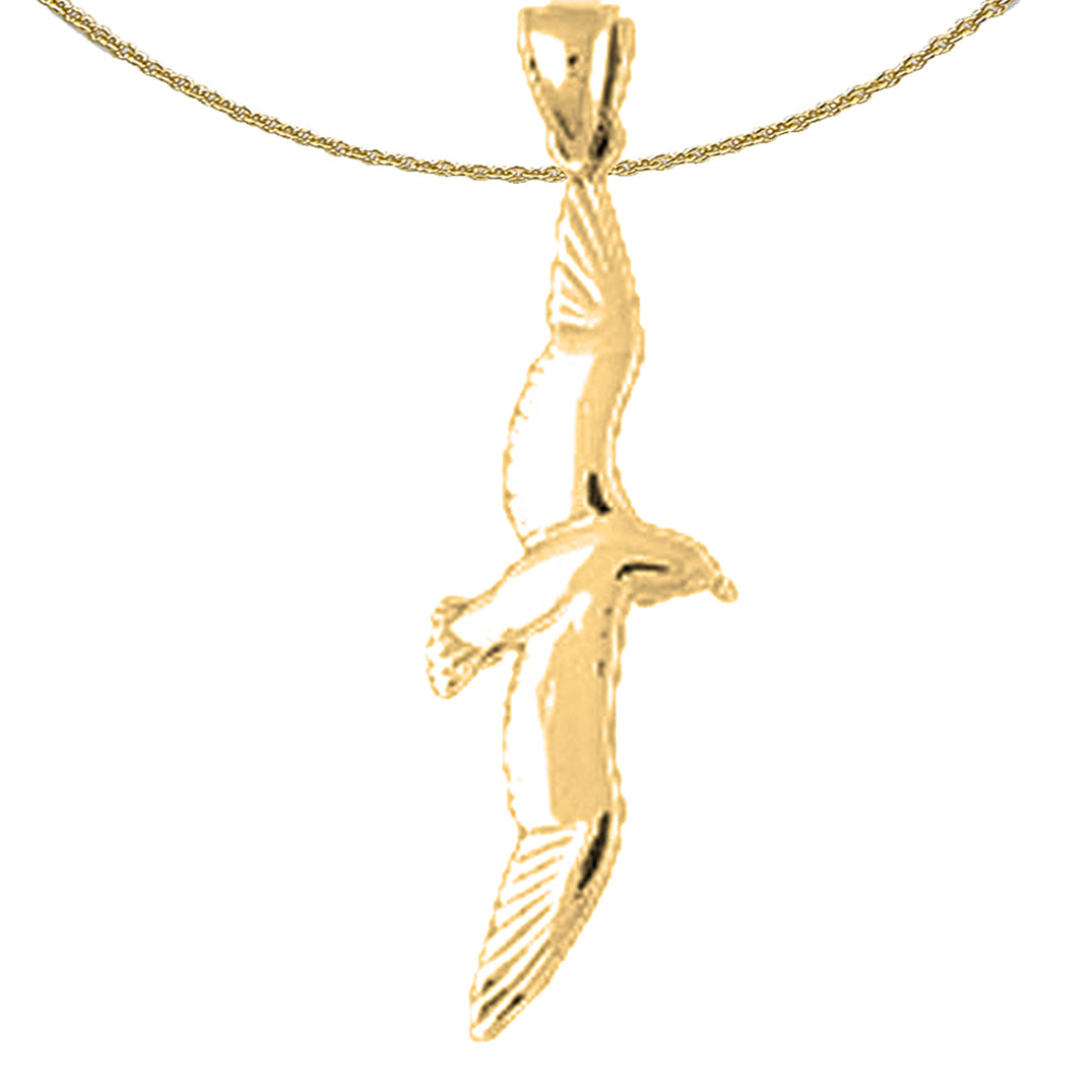 This gorgeous 10K, 14K or 18K gold bird pendant. This 10K, 14K or 18K gold pendant measures 54 mm in length by 16 mm in width. Measurement includes bale. JewelsObsession creates all gold jewelry in our state of the art manufacturing facility.