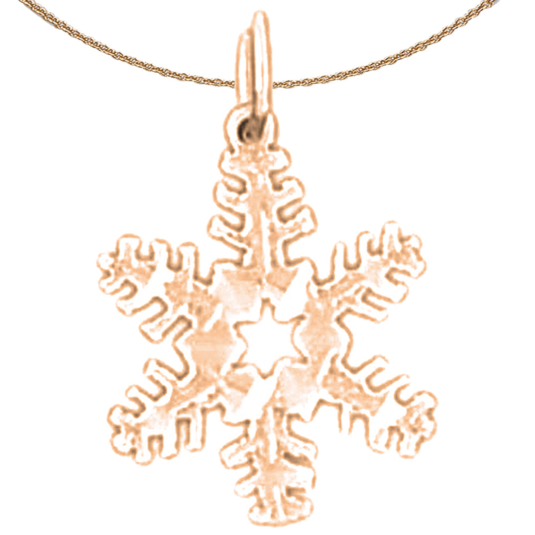 This is an elegant 14K or 18K gold snow flake pendant. This 14K or 18K gold pendant measures in length by in width. Measurement includes bale. JewelsObsession creates all gold jewelry in our state of the art manufacturing facility.