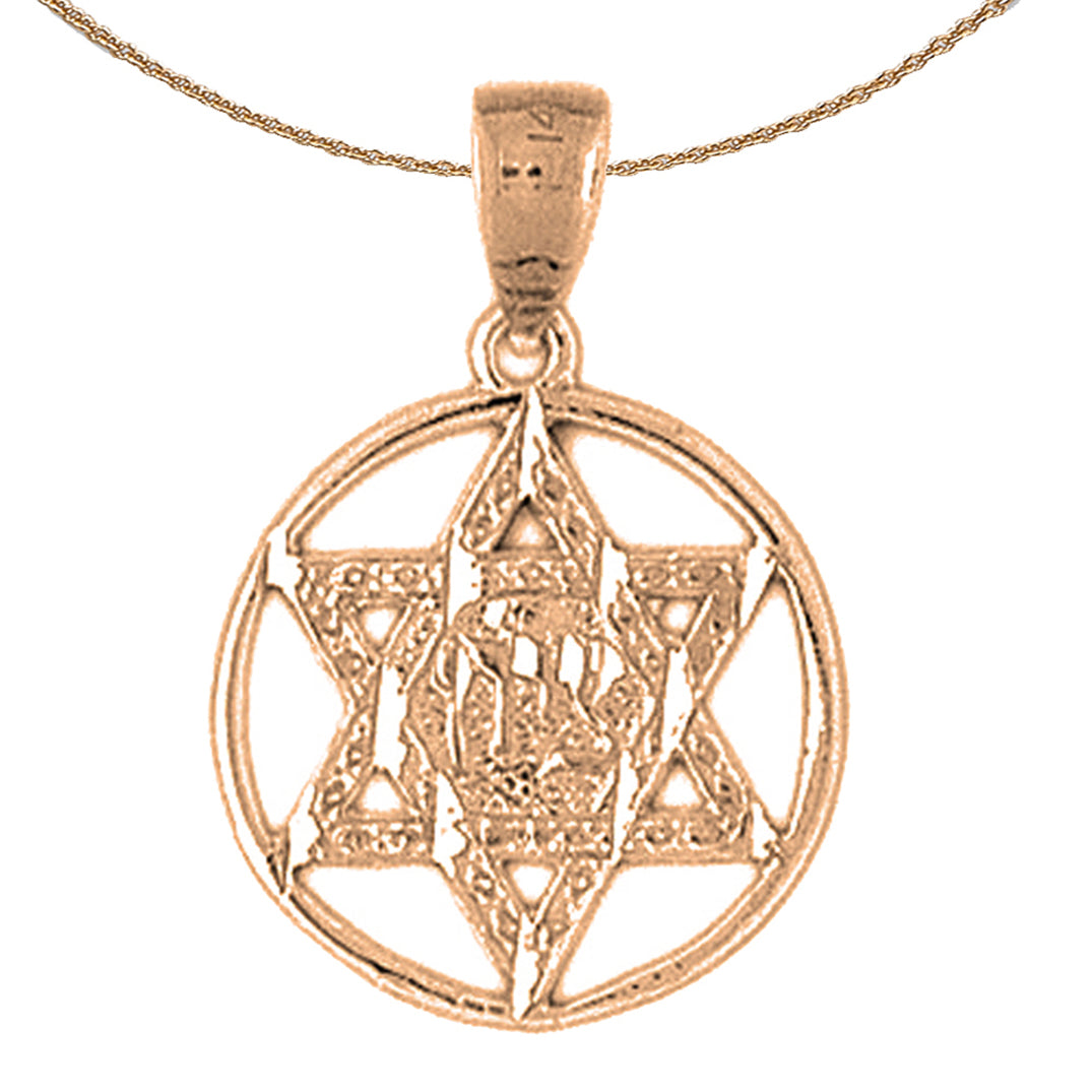 14K or 18K Gold Star of David in Circle Pendant
