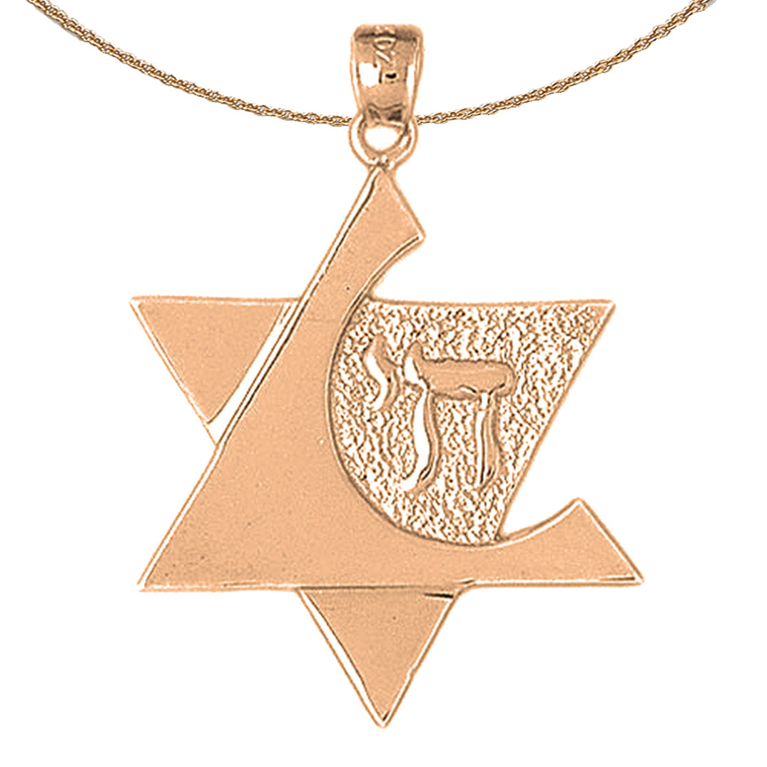 10K, 14K or 18K Gold Star of David with Chai Pendant