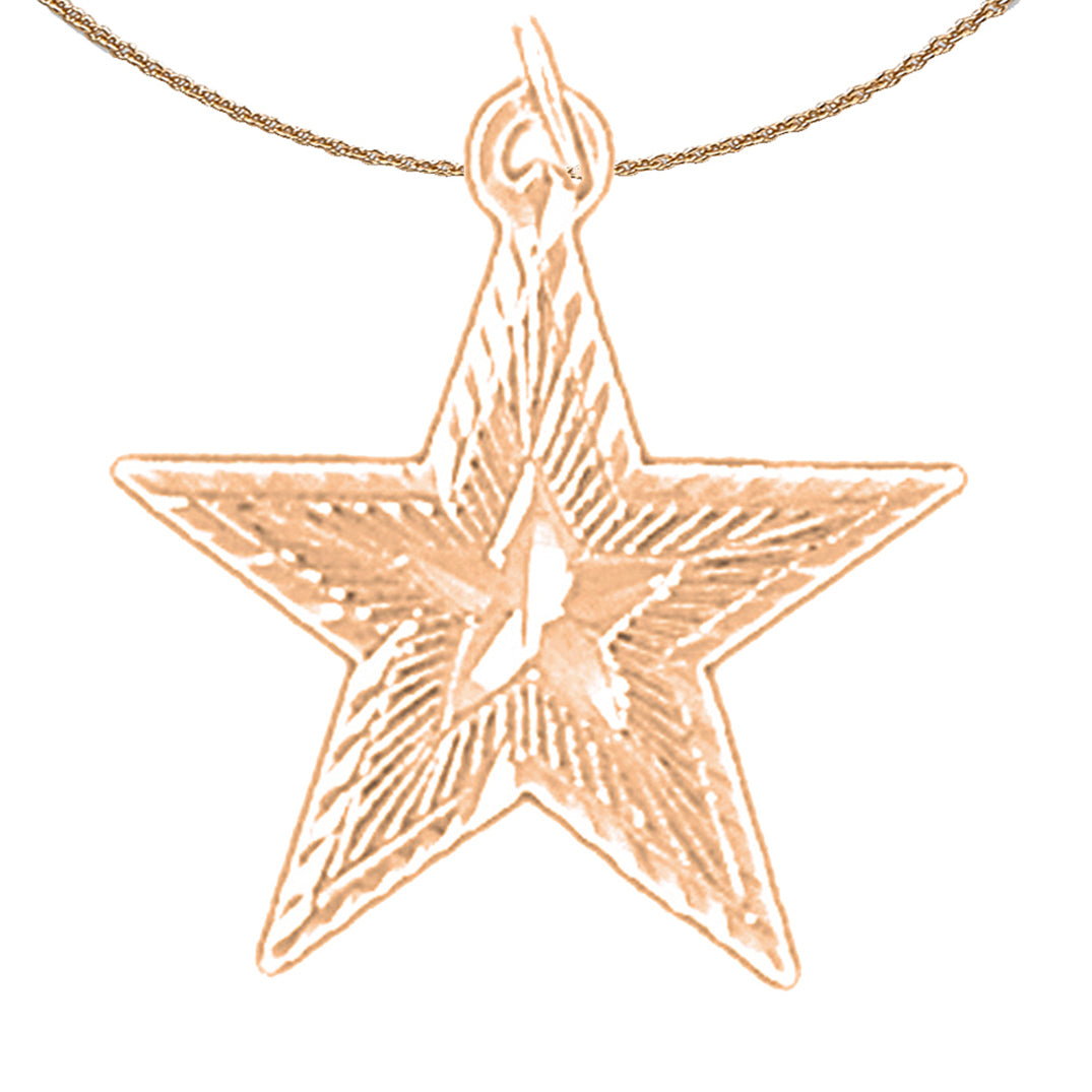This is a beautiful 14K or 18K gold star pendant. This 14K or 18K gold pendant measures 21 mm in length by 19 mm in width. Measurement includes bale. JewelsObsession creates all gold jewelry in our state of the art manufacturing facility.