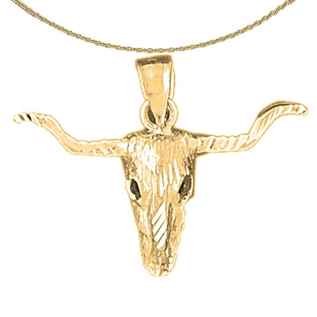 This is a beautiful 10K, 14K or 18K gold steer head pendant. This 10K, 14K or 18K gold pendant measures in length by in width. Measurement includes bale. JewelsObsession creates all gold jewelry in our state of the art manufacturing facility.