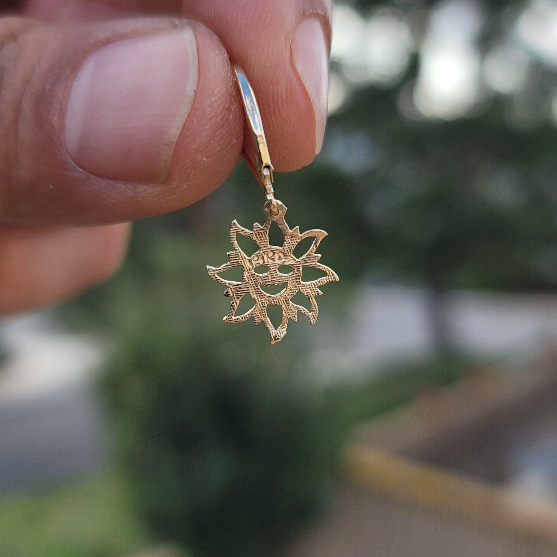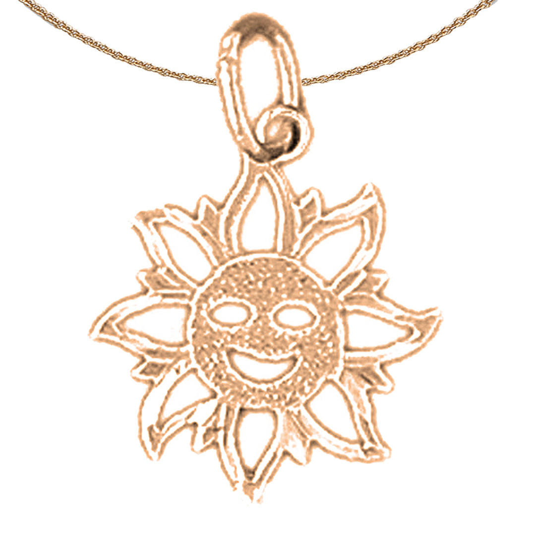 This is a beautiful 14K or 18K gold sun pendant. This 14K or 18K gold pendant measures 18 mm in length by 13 mm in width. Measurement includes bale. JewelsObsession creates all gold jewelry in our state of the art manufacturing facility.