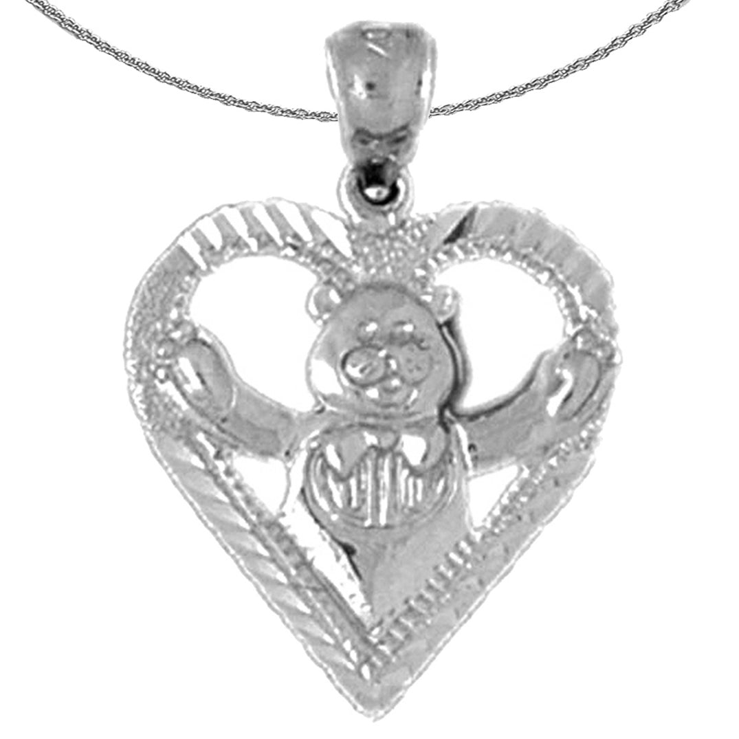 This is an elegant 14K or 18K gold teddy bear in heart pendant. This 14K or 18K gold pendant measures 19 mm in length by 18 mm in width. Measurement includes bale. JewelsObsession creates all gold jewelry in our state of the art manufacturing facility.
