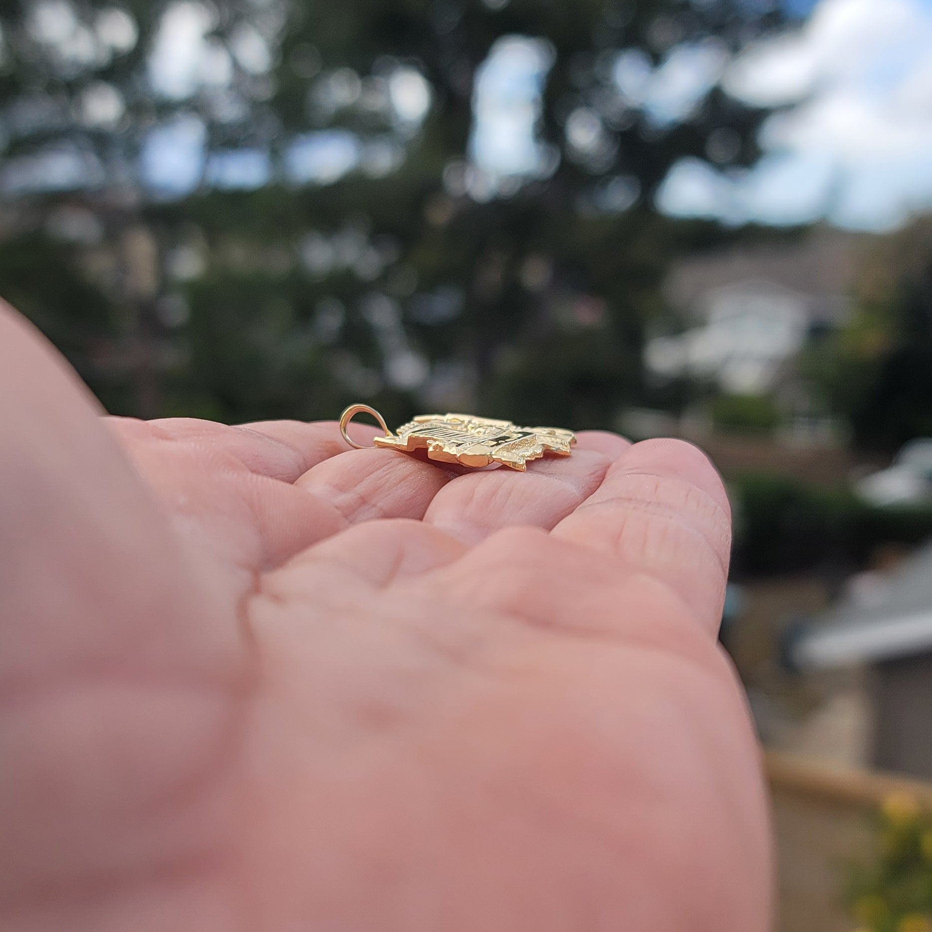 This is an elegant 10K, 14K or 18K gold truck pendant. This 10K, 14K or 18K gold pendant measures 33 mm in length by 31 mm in width. Measurement includes bale. JewelsObsession creates all gold jewelry in our state of the art manufacturing facility.