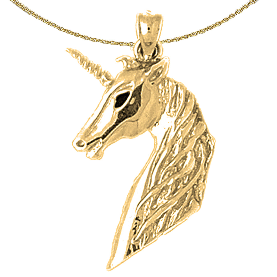This gorgeous 10K, 14K or 18K gold unicorns pendant. This 10K, 14K or 18K gold pendant measures 30 mm in length by 17 mm in width. Measurement includes bale. JewelsObsession creates all gold jewelry in our state of the art manufacturing facility.
