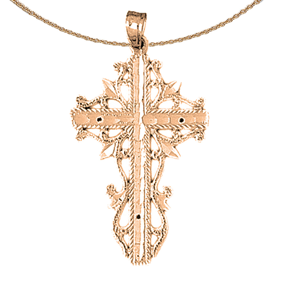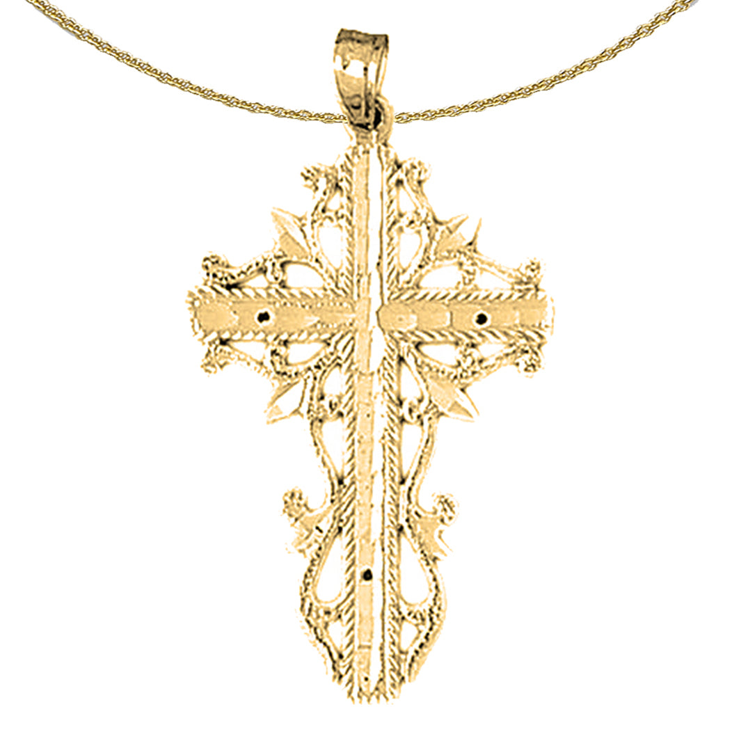 This gorgeous 10K, 14K or 18K gold cross pendant. This 10K, 14K or 18K gold pendant measures 42 mm in length by 23 mm in width. Measurement includes bale. JewelsObsession creates all gold jewelry in our state of the art manufacturing facility.