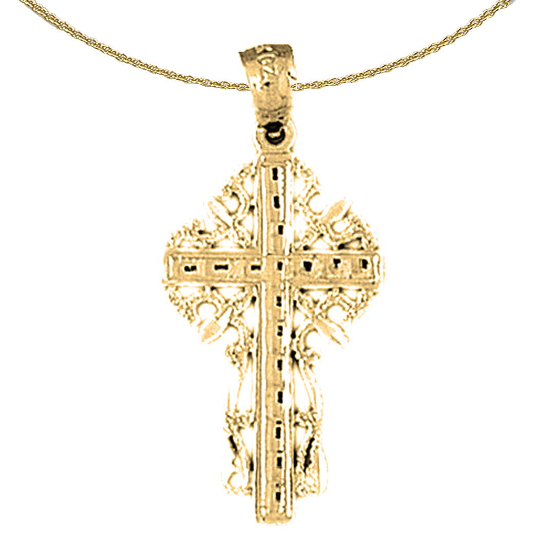 This is an elegant 14K or 18K gold cross pendant. This 14K or 18K gold pendant measures 33 mm in length by 15 mm in width. Measurement includes bale. JewelsObsession creates all gold jewelry in our state of the art manufacturing facility.
