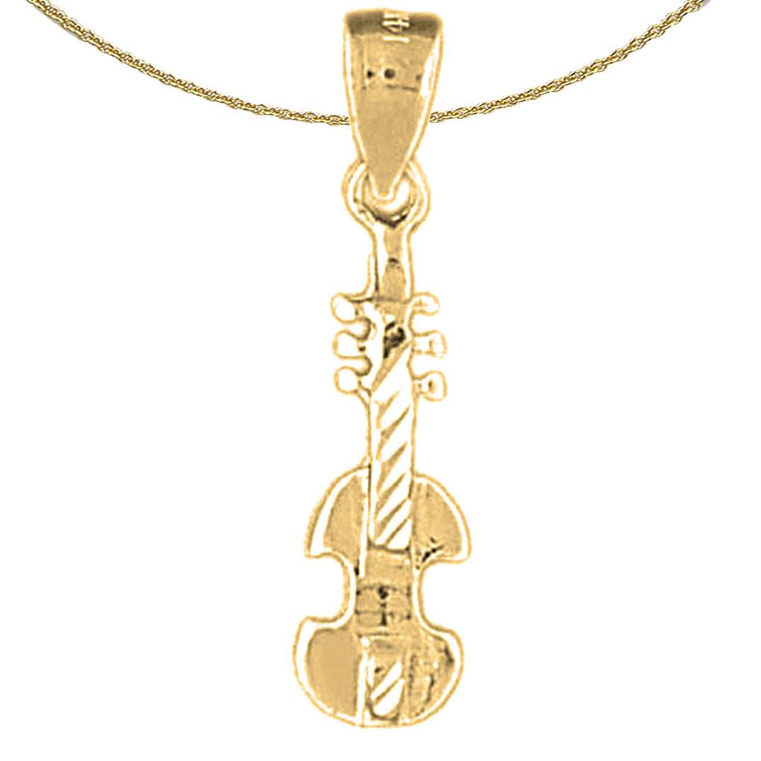 This is an elegant 14K or 18K gold violin, viola pendant. This 14K or 18K gold pendant measures 27 mm in length by 6 mm in width. Measurement includes bale. JewelsObsession creates all gold jewelry in our state of the art manufacturing facility.