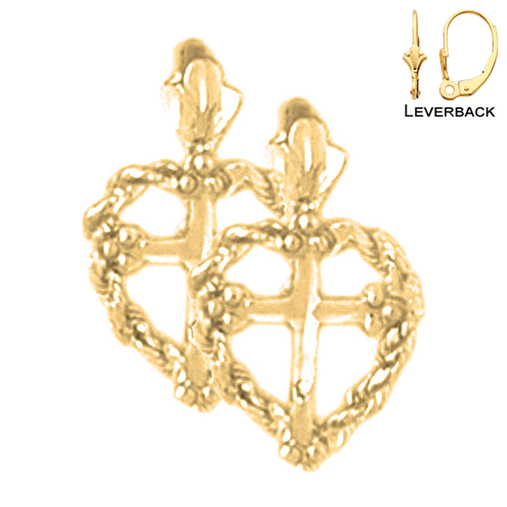 Yellow Gold-plated Silver 16mm Heart & Cross Earrings