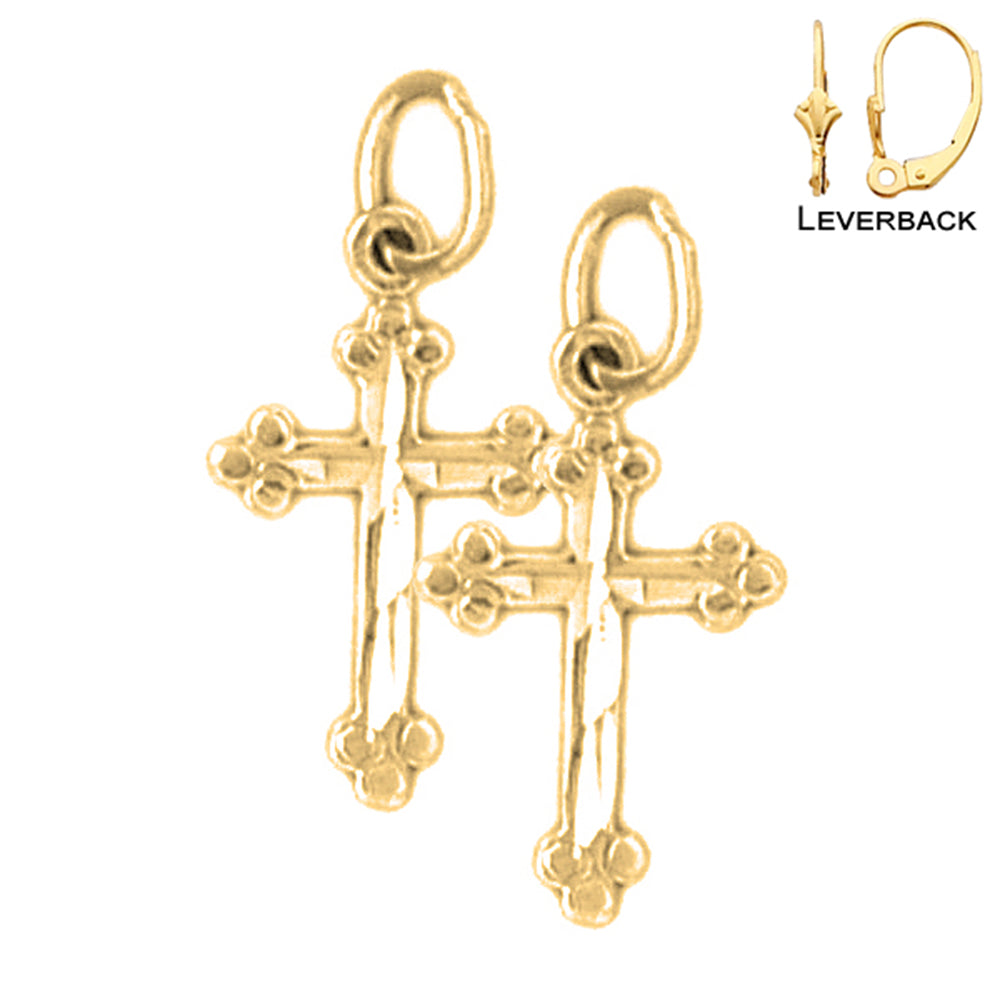 Sterling Silver 19mm Budded Cross Earrings (White or Yellow Gold Plated)