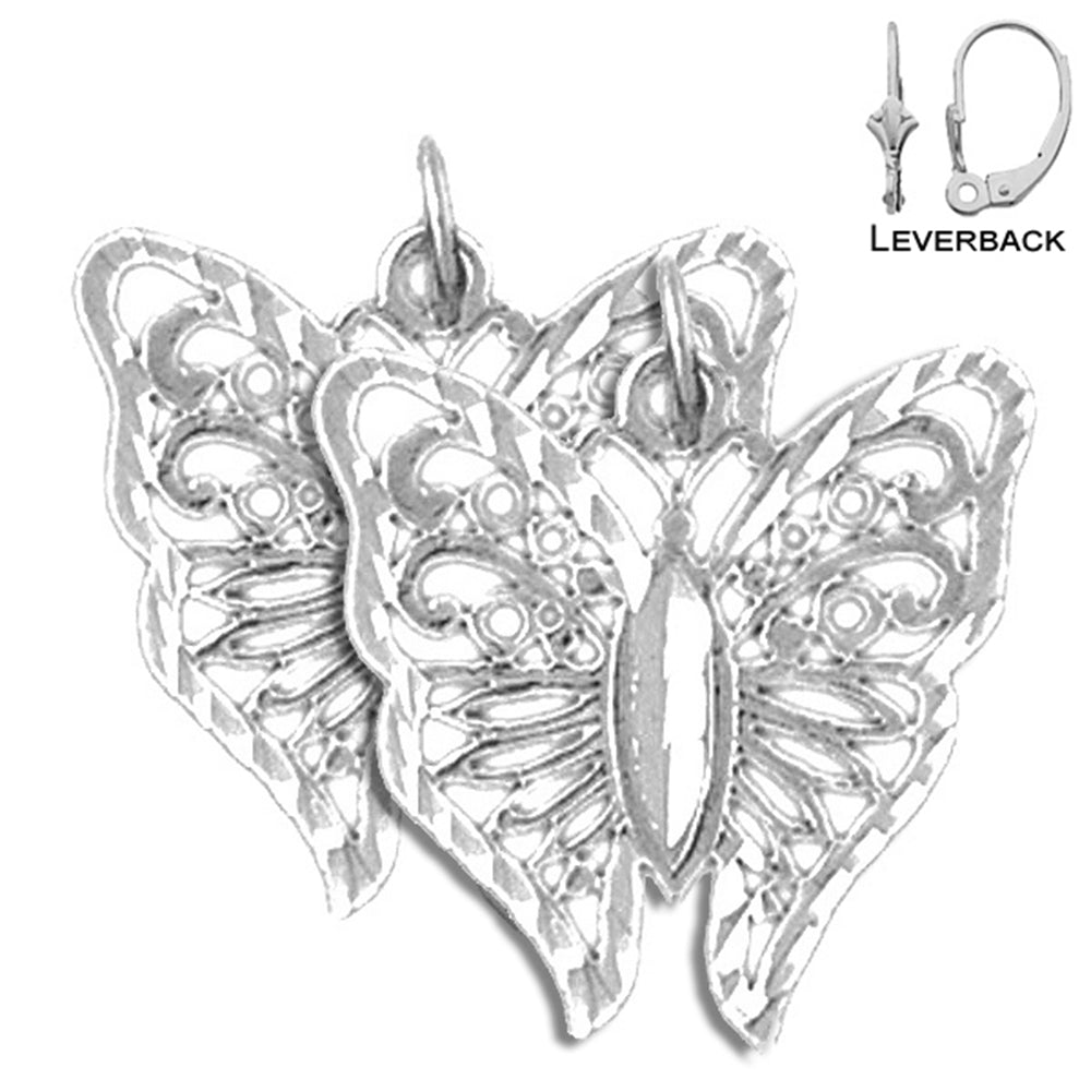 This is a beautiful sterling silver 20mm butterflies earrings. This sterling silver earrings measures 20 mm in length by 19 mm width. JewelsObsession creates all our silver jewelry in our state of the art manufacturing facility.