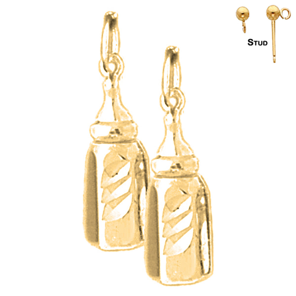 Sterling Silver 21mm Baby Bottle Earrings (White or Yellow Gold Plated)